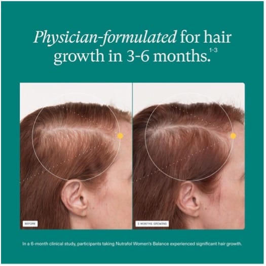 Nutrafol Women’s Balance is a daily supplement designed specifically for women over 45 who are experiencing hair thinning due to hormonal shifts—especially during perimenopause and menopause.